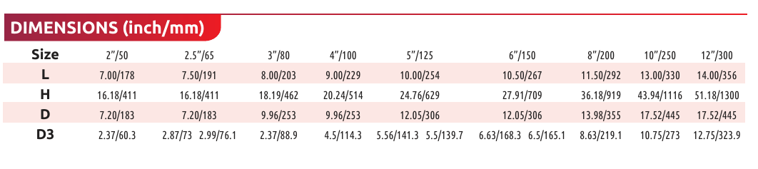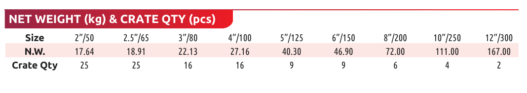 - Flange drilled to ANSI B16.1 Class 125 / ANSI B16.5 Class 150 /EN1092-2 PN16 / BS10 Table D / Table E