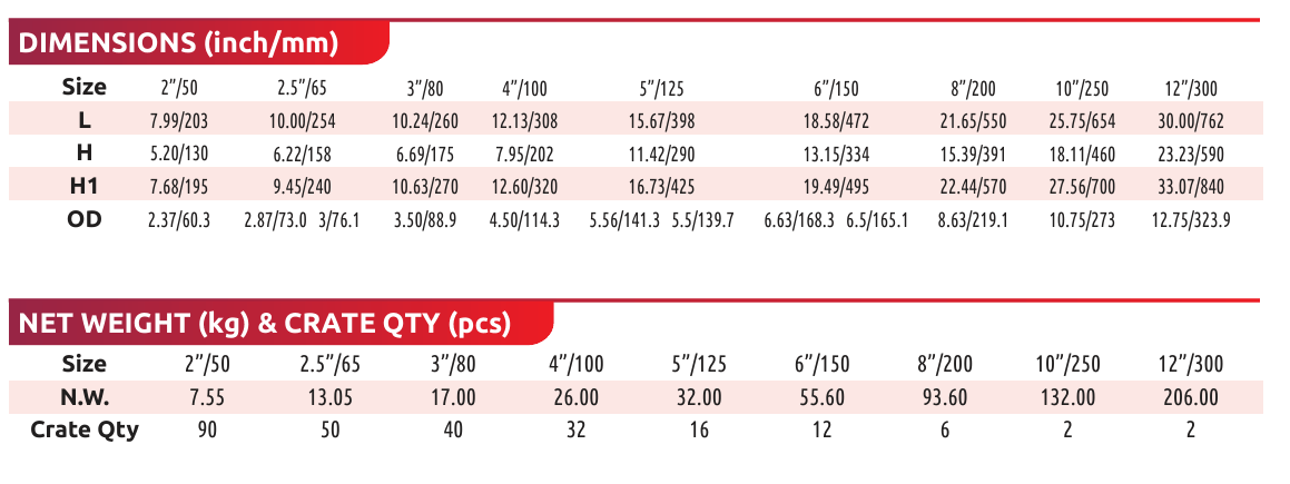 - Flange drilled to ANSI B16.1 Class 125 / ANSI B16.5 Class 150 / EN1092-2 PN16 / BS10 Table D / Table E / AWWA C606